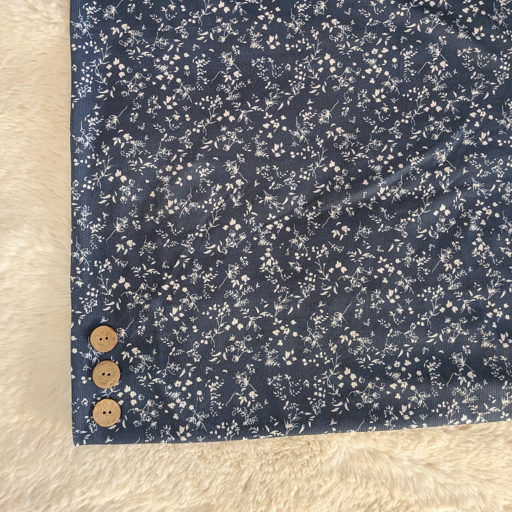 Gianna mini rib knit on navy fabric. 96% poly, 4% spandex. By the half yard.