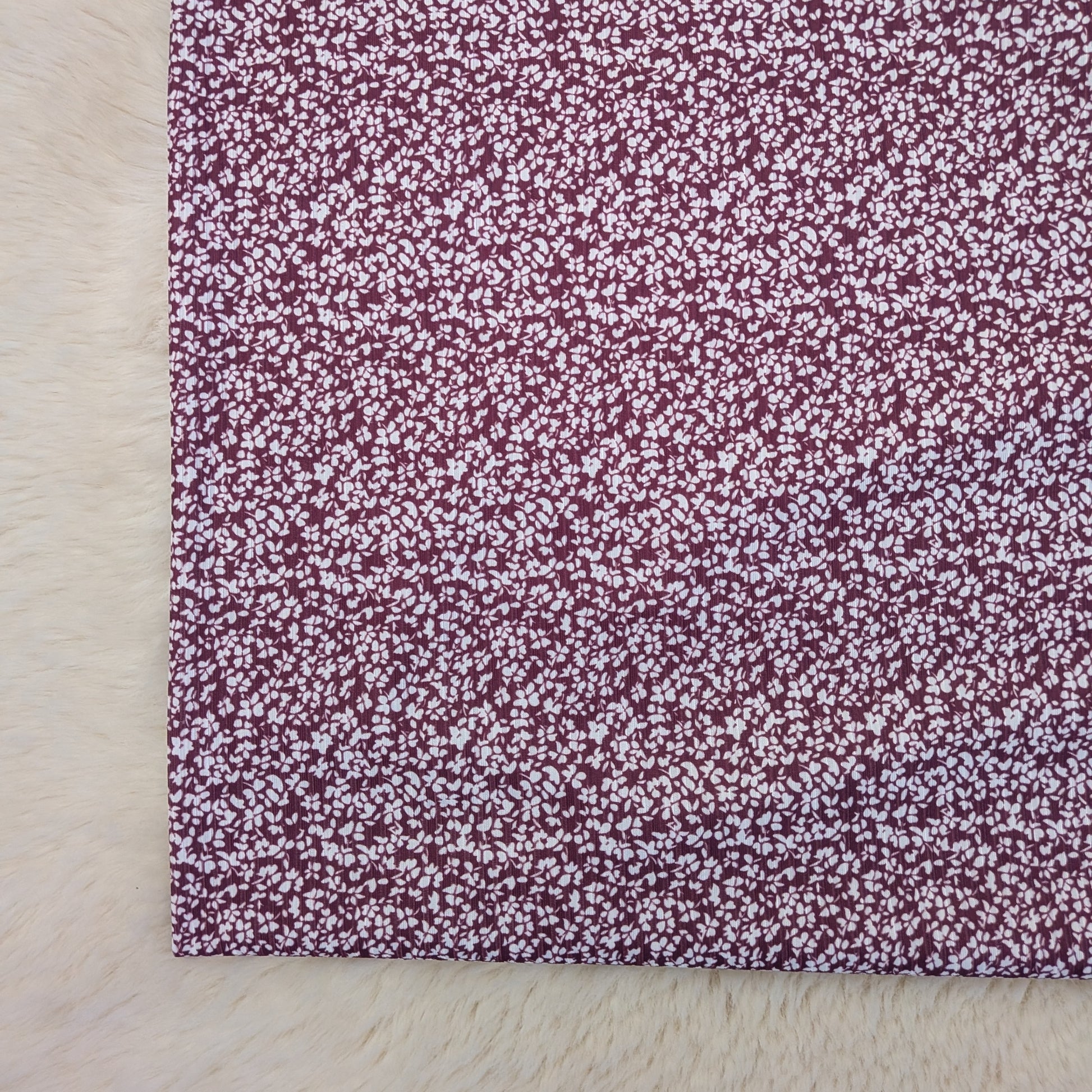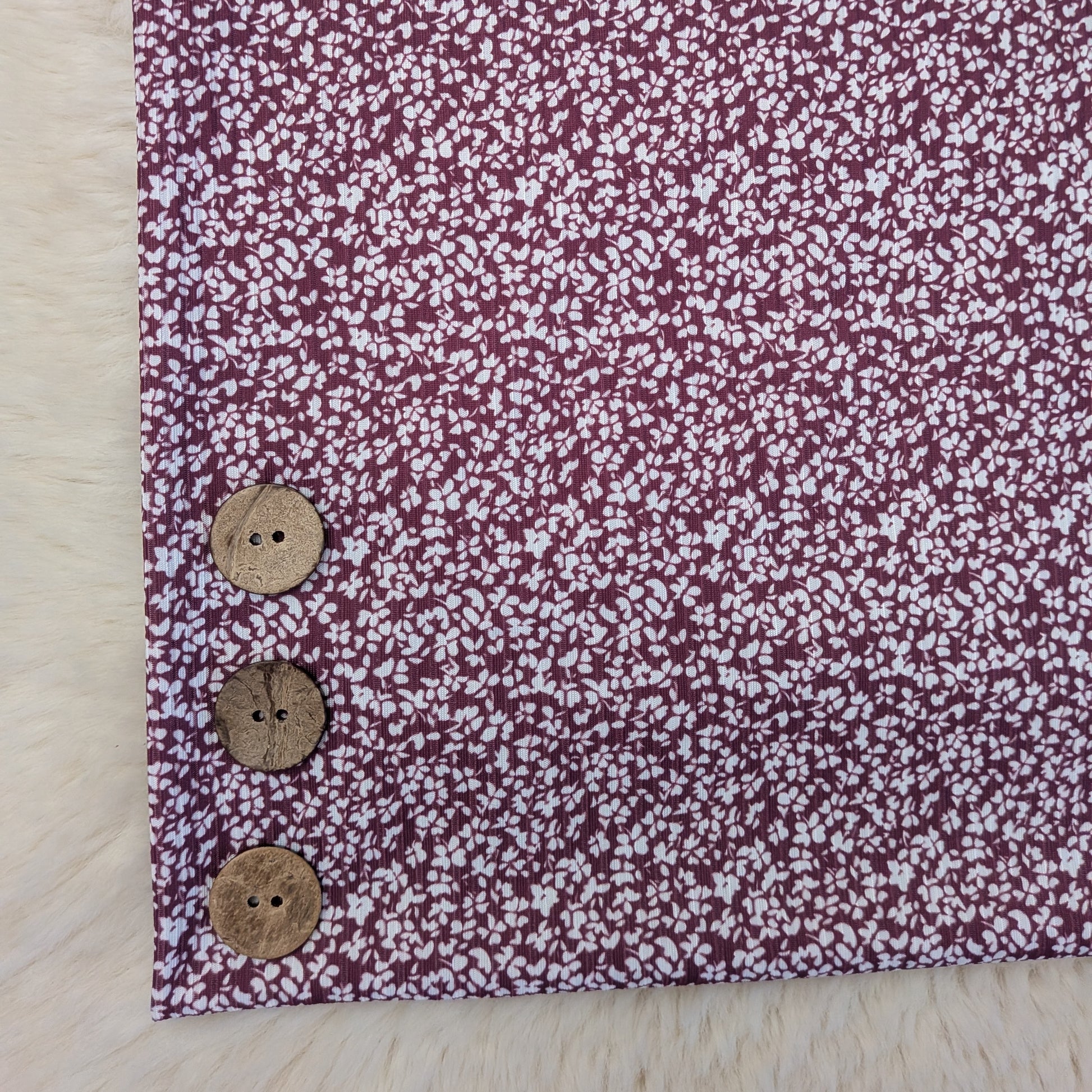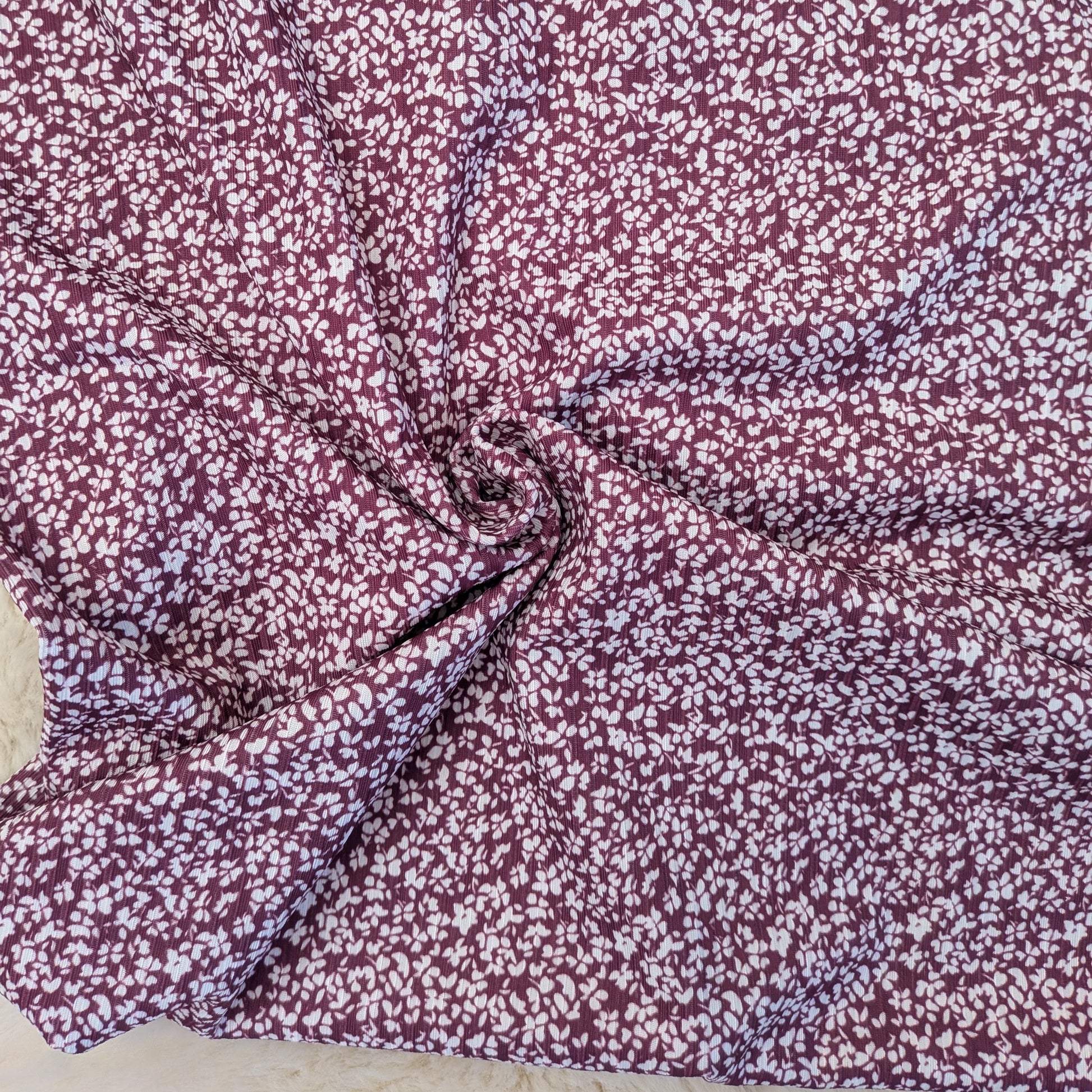 Ditzy print on wine unbrushed ribbed knit fabric. By the half yard.